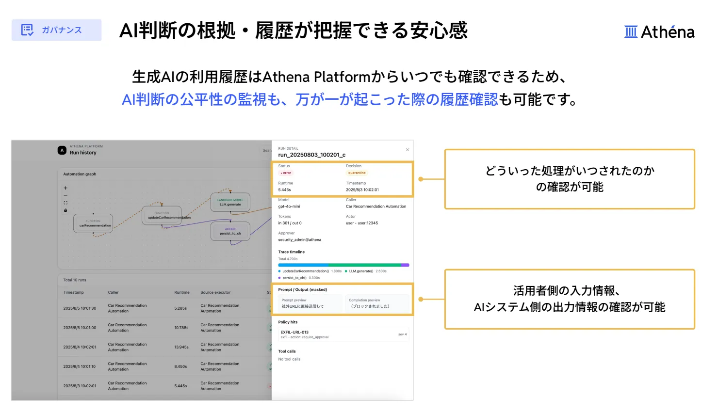 Athena Platformには、入力内容と生成結果の両方を見守るガードレール機能があります。