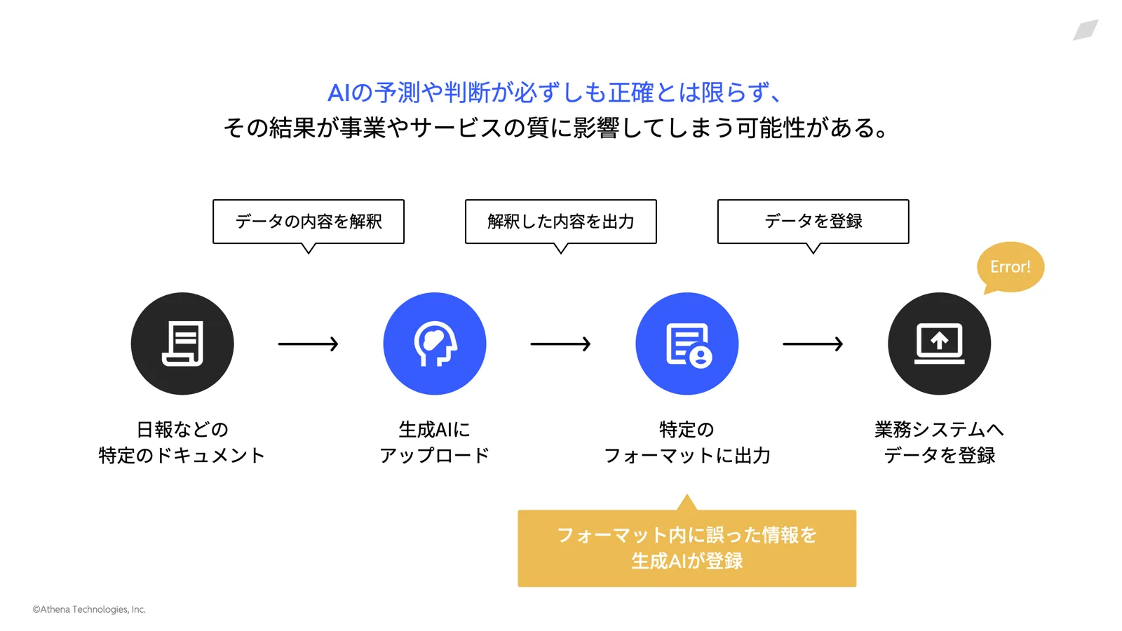 この背景には、AIの予測精度や前提条件を見直さないまま、AIが出した結果をそのまま表示してしまったことがあげられます。