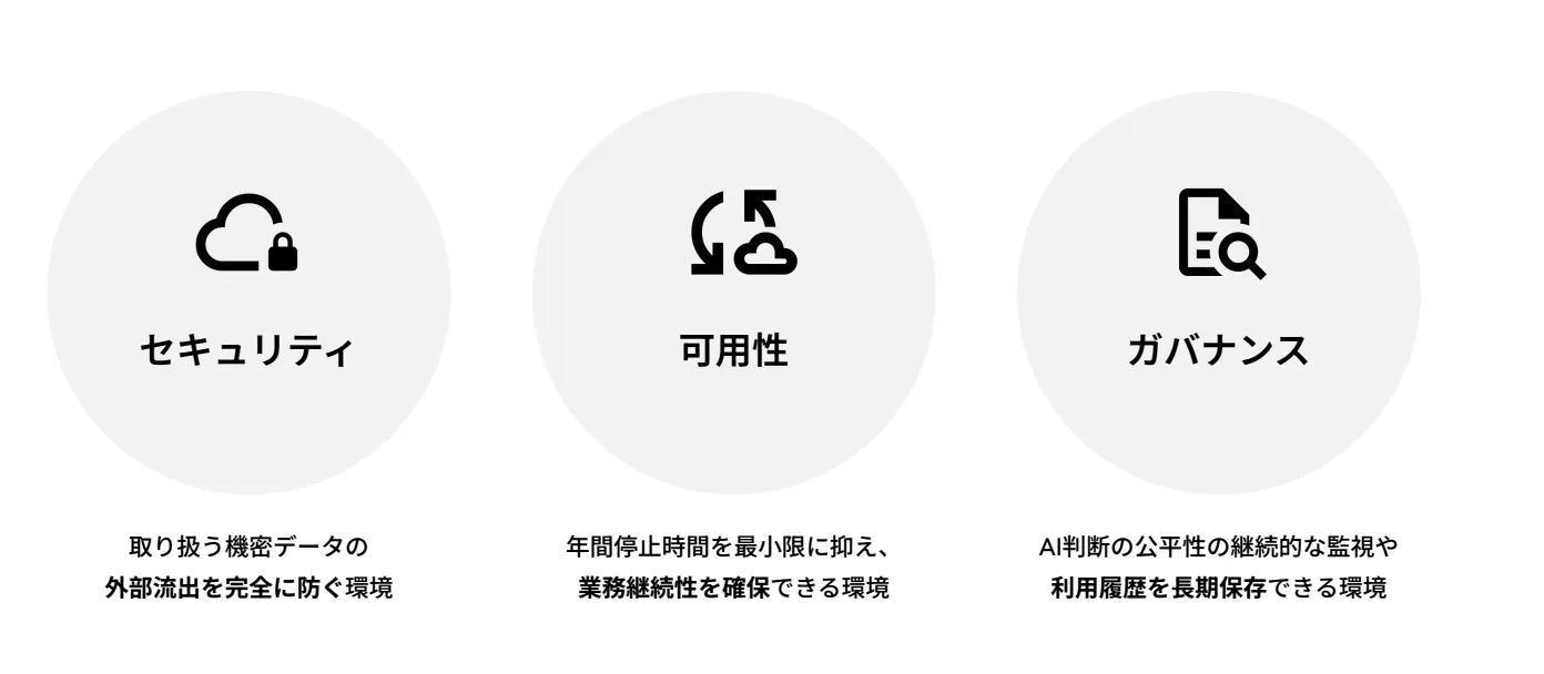 金融や医療、公共分野のように情報管理が厳しい業界でも、安心して生成AIを業務に組み込める環境を整えられる点が特徴です。