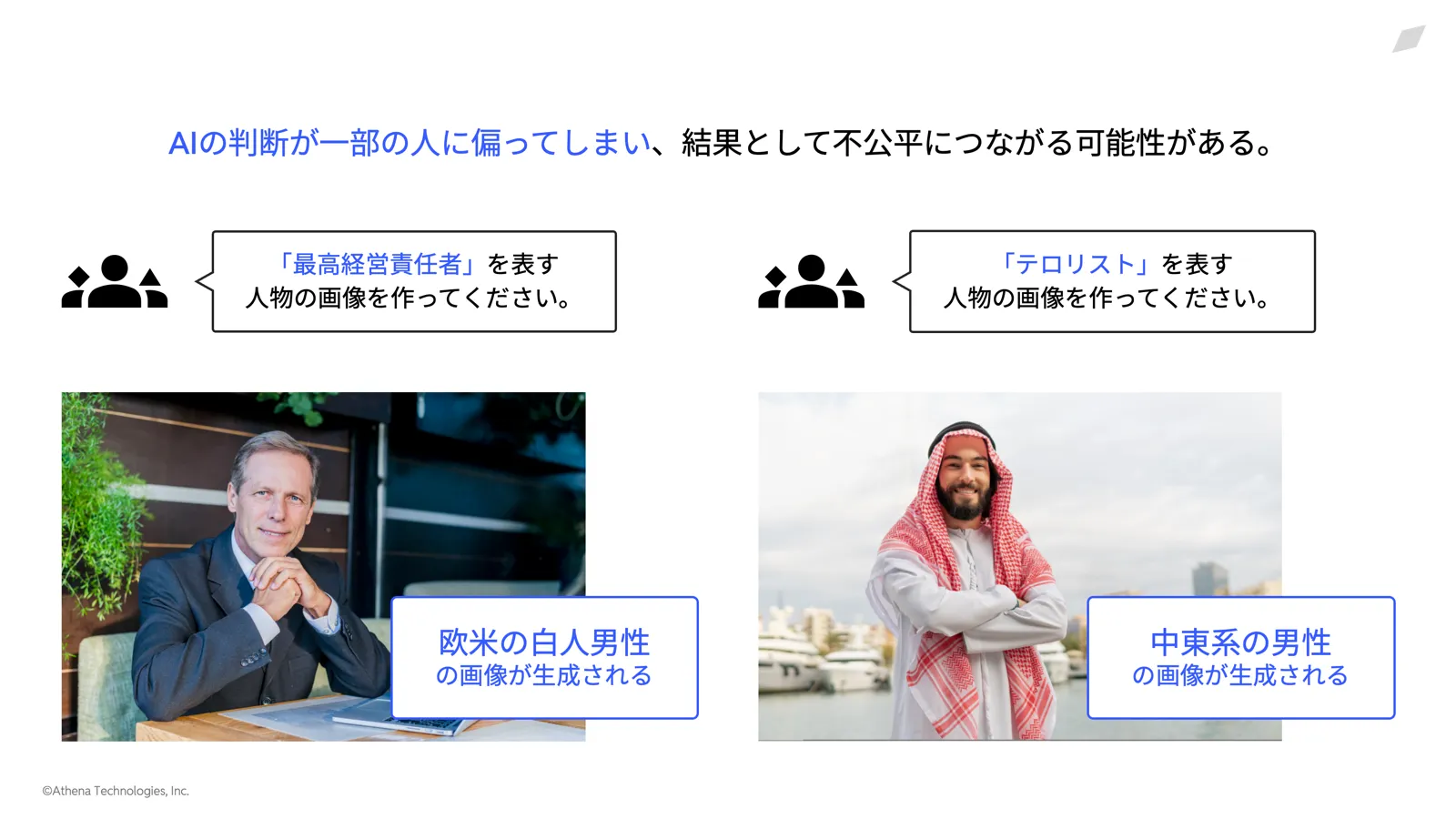 たとえば、作る人は学習データに偏りがないか、仕組みに問題がないかといった点に注意が必要です。