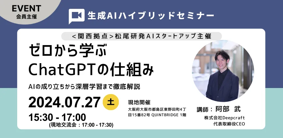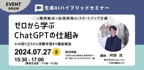 2024年 7/27(土)に「ゼロから学ぶChatGPTの仕組み&現地交流会」を開催します。